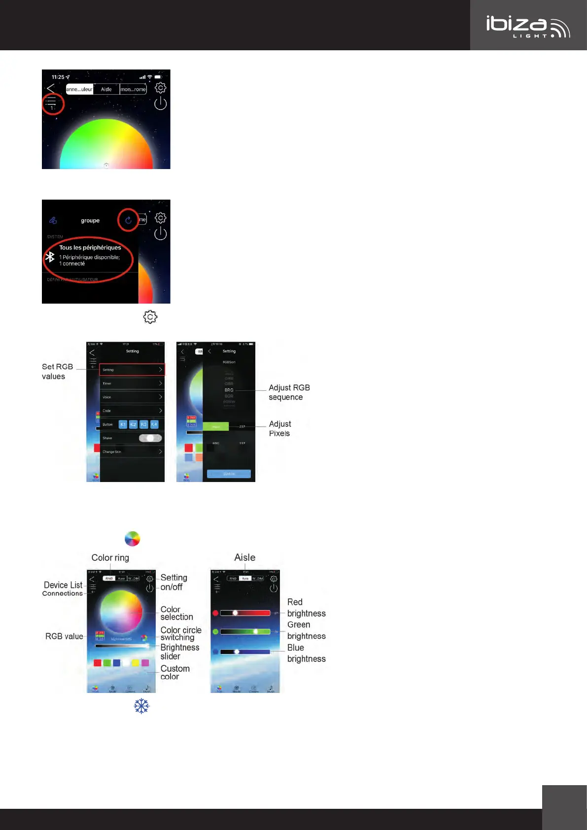 1.V meniju Nastavitve : lahko nastavite ritem, RGB zaporedje, prilagodite slikovne pike, nastavite časovnik,