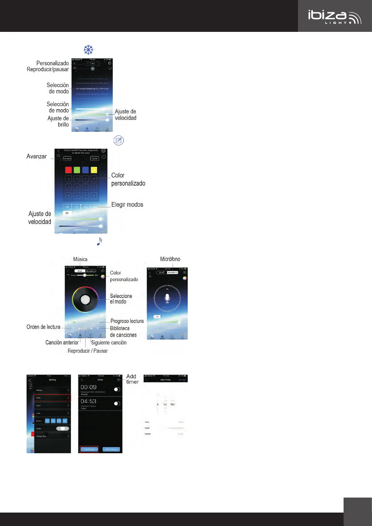 6. Temporizador: puede congurar un tiempo especíco para encender o apagar el MAGIC-COLOR-STICK. Des-