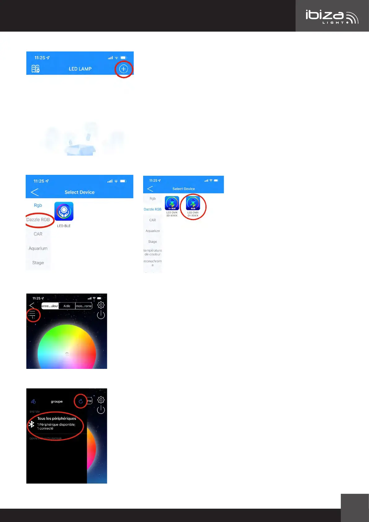 Selectați funcția „Dazzle RGB” pentru a vă controla stick-urile luminoase și a doua pictogramă LED DMX, care