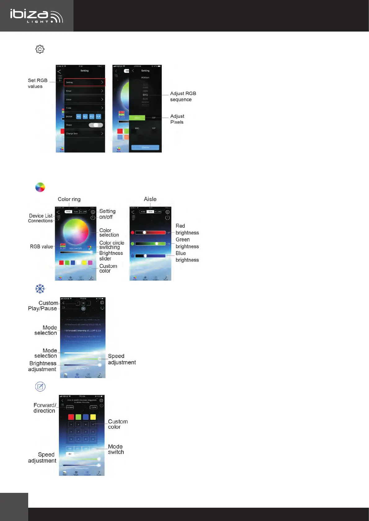 1. În meniul Setări: puteți seta ritmul, secvența RGB, puteți ajusta pixelii, cronometrul, agitați, schimbați