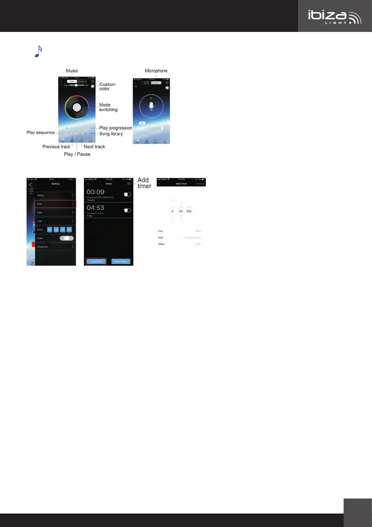 Interfejs muzyczny ma tryb muzyki i mikrofonu. W trybie muzycznym kolor zmienia się w zależności od