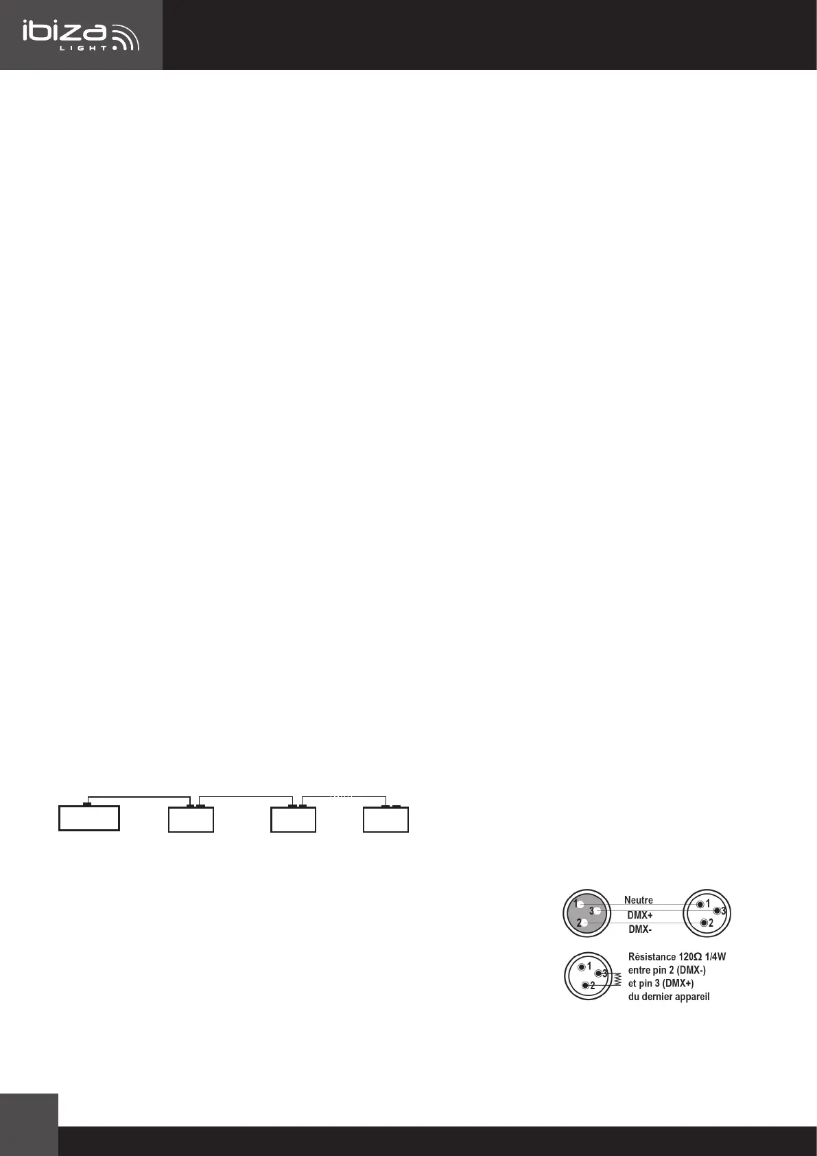mande DMX512 ou pour faire fonctionner deux ou plusieurs eets en mode maître/esclave. Le nombre combiné