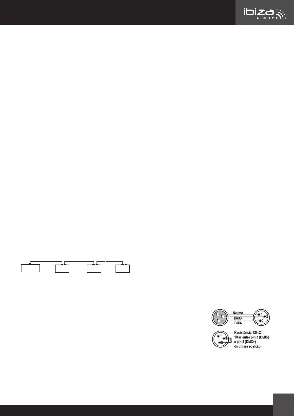 transmissão do sinal, é sempre aconselhável ligar um terminador de sinal DMX.