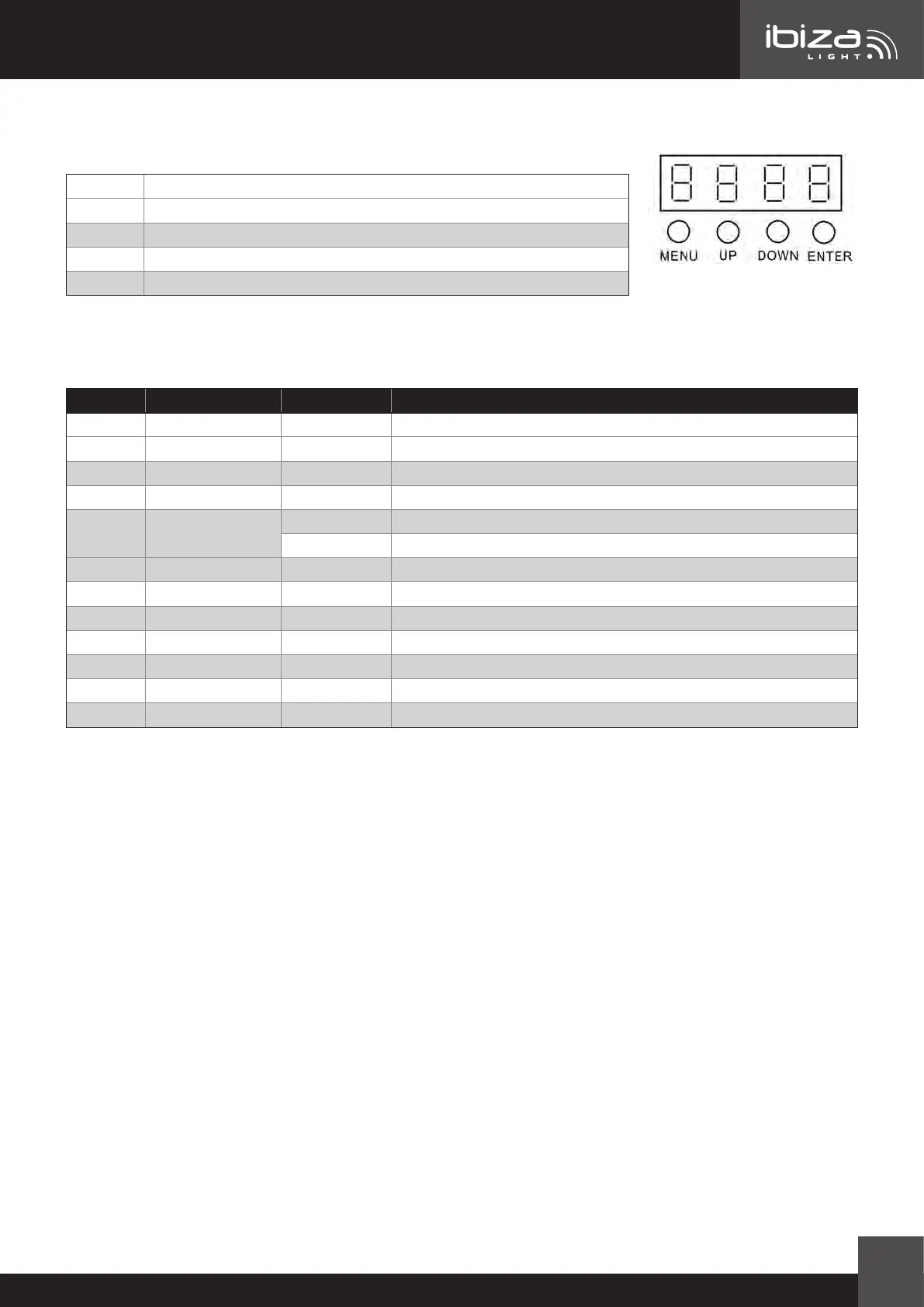 mande DMX512 ou pour faire fonctionner deux ou plusieurs eets en mode maître/esclave. Le nombre combiné