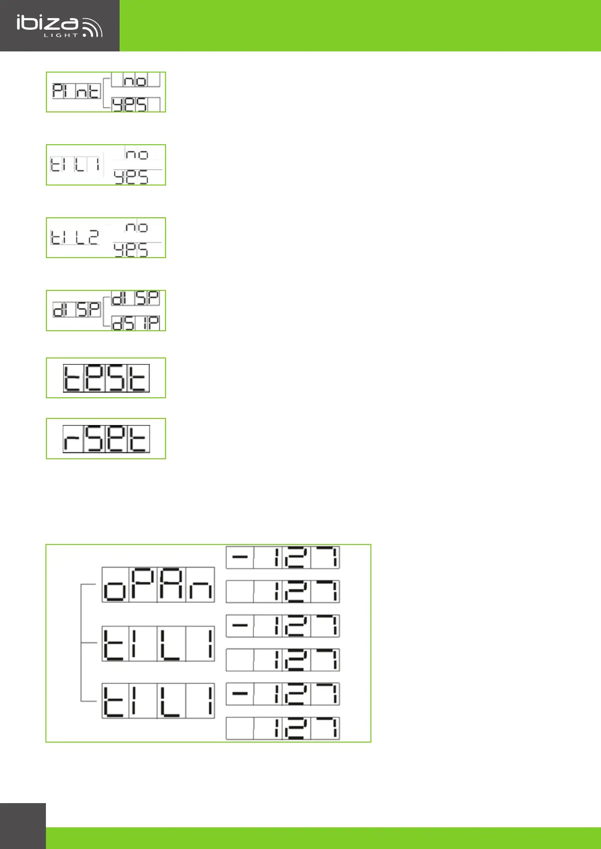 Esta opción inicia un test automático del equipo. Apriete en MENU, seleccione test,