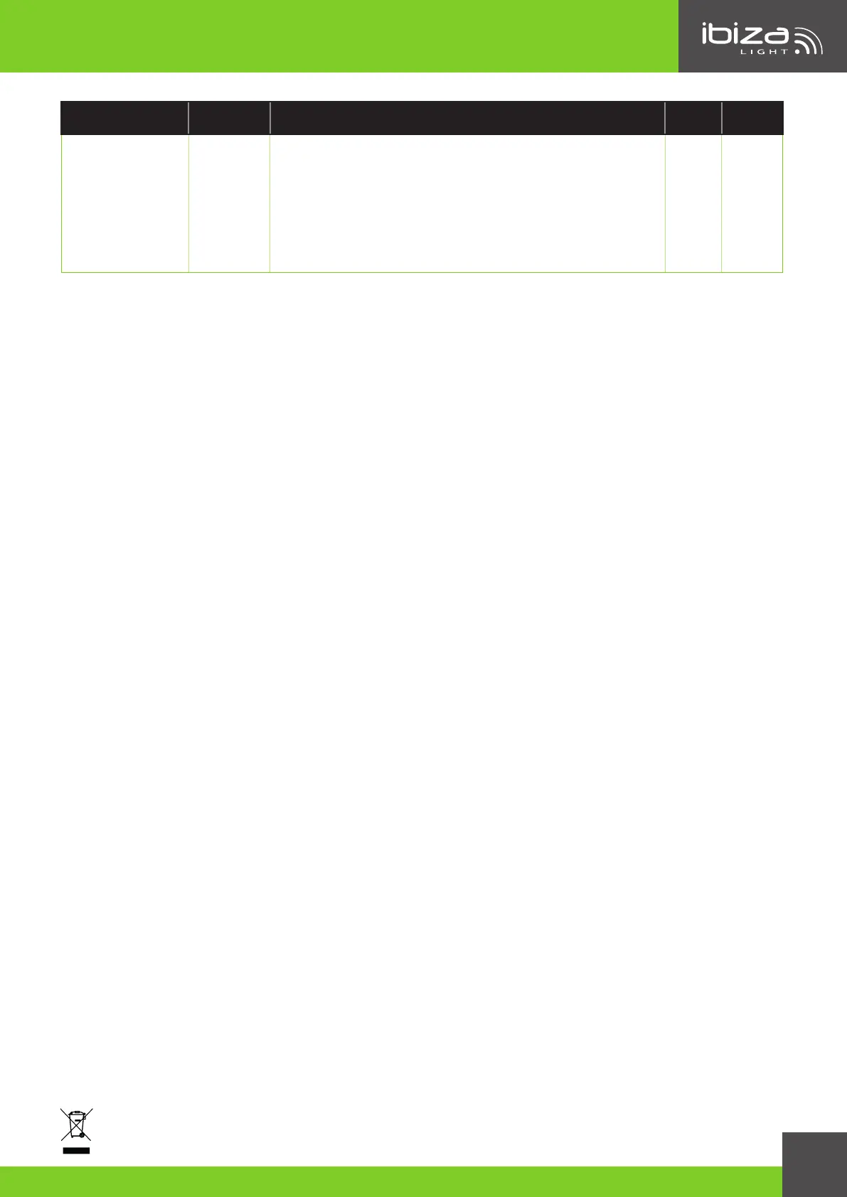Efecto de iluminación: .............................Efecto Wash, salto de color, cambio gradual de color, estroboscopio, dimmer