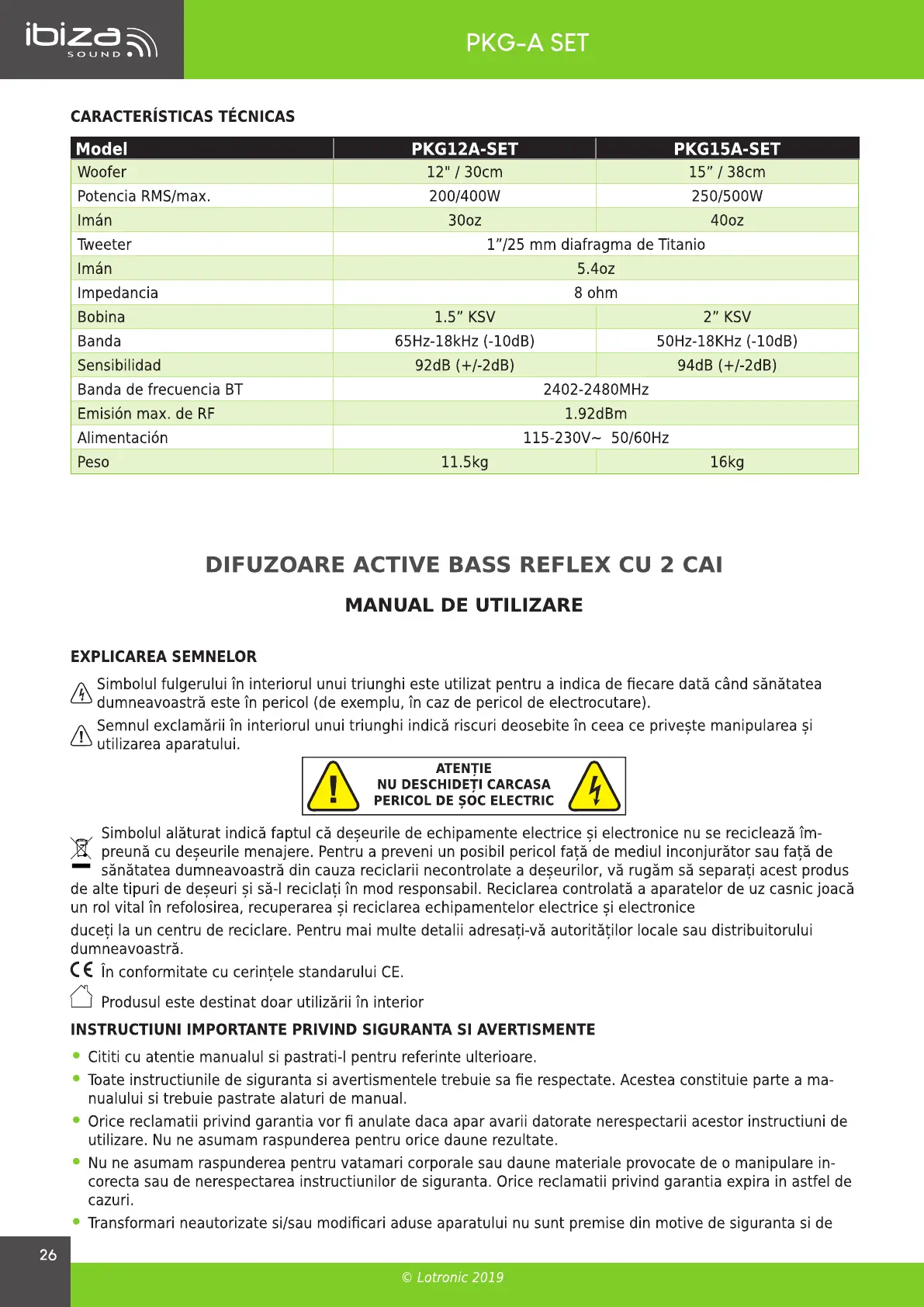Bekijk gratis de handleiding van Ibiza Sound PKG15A-SET, stel vragen en lees de antwoorden op veelvoorkomende problemen, of gebruik onze assistent om sneller informatie in de handleiding te vinden of uitleg te krijgen over specifieke functies.