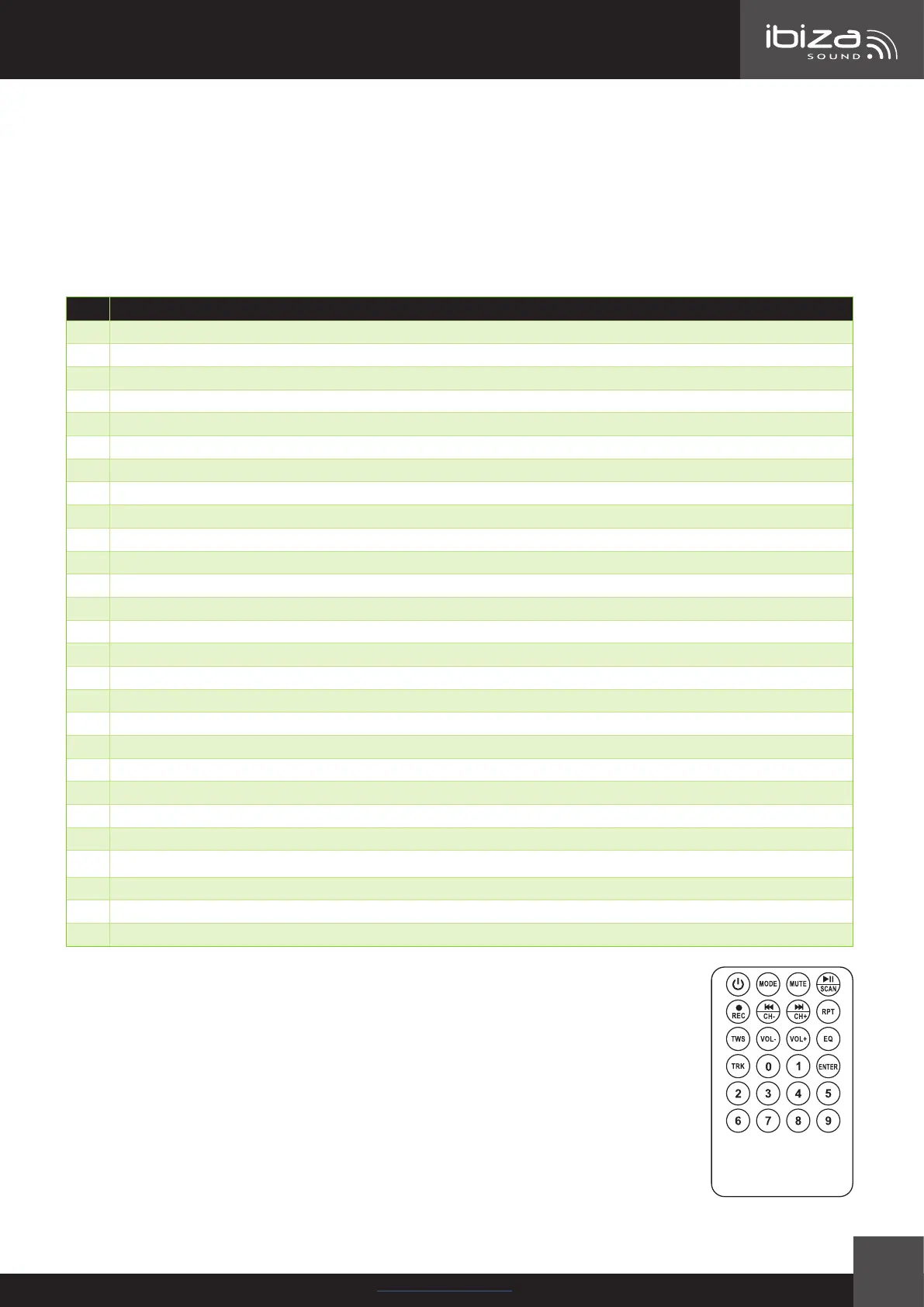 14 Pulsación corta: Repetición de la pista; pulsación larga: función TWS