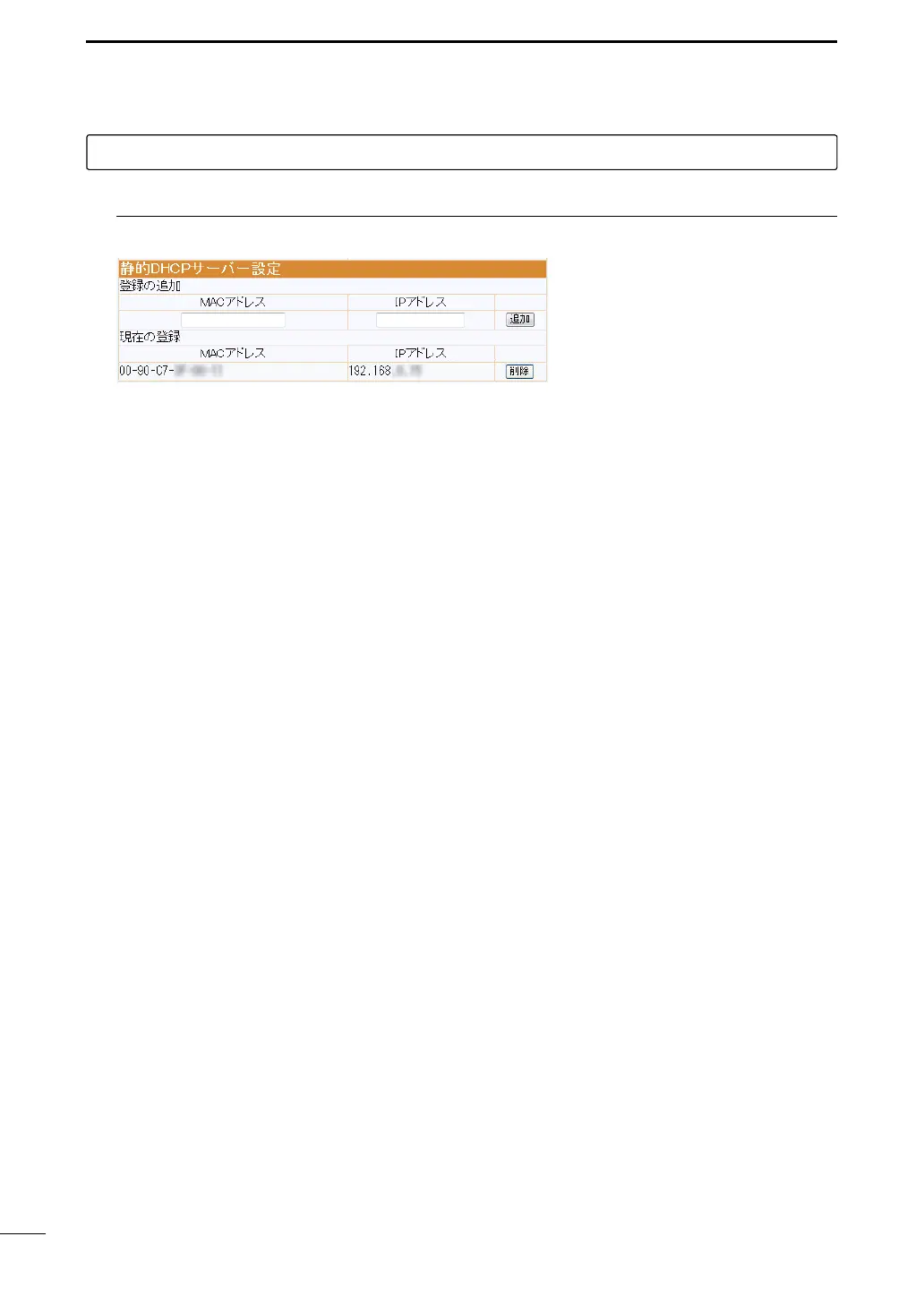 登録する端末のIPアドレスは、DHCPサーバー機能による割り