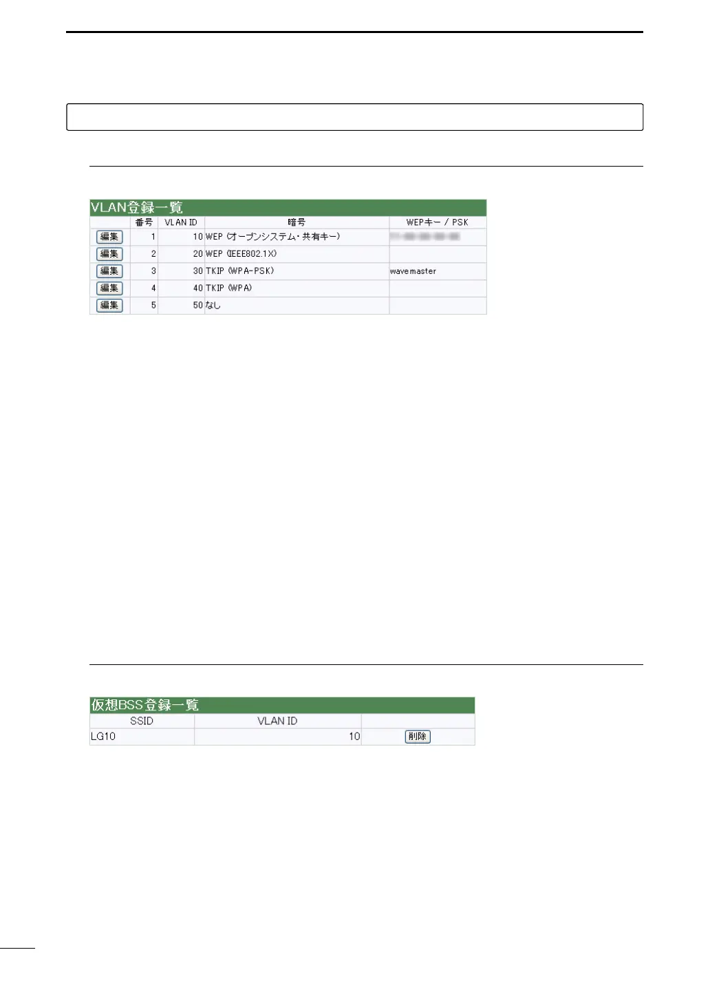 [仮想BSS設定]項目の[VLANID]欄で設定した内容を表示しま