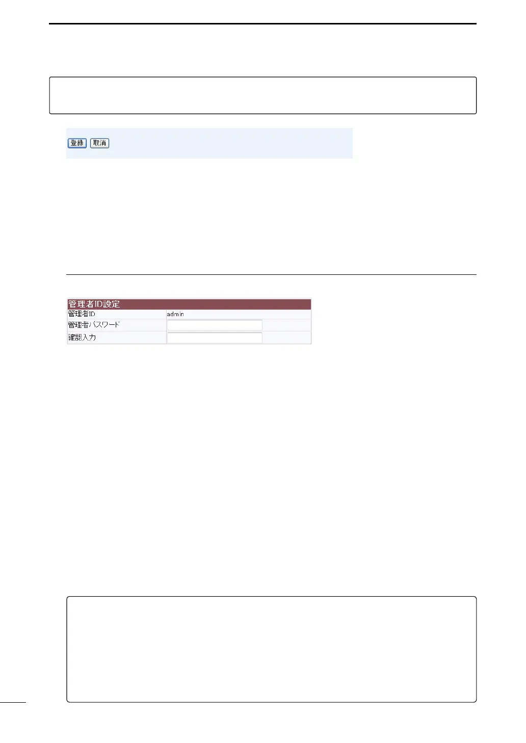 管理者IDなどを設定するための設定画面です。