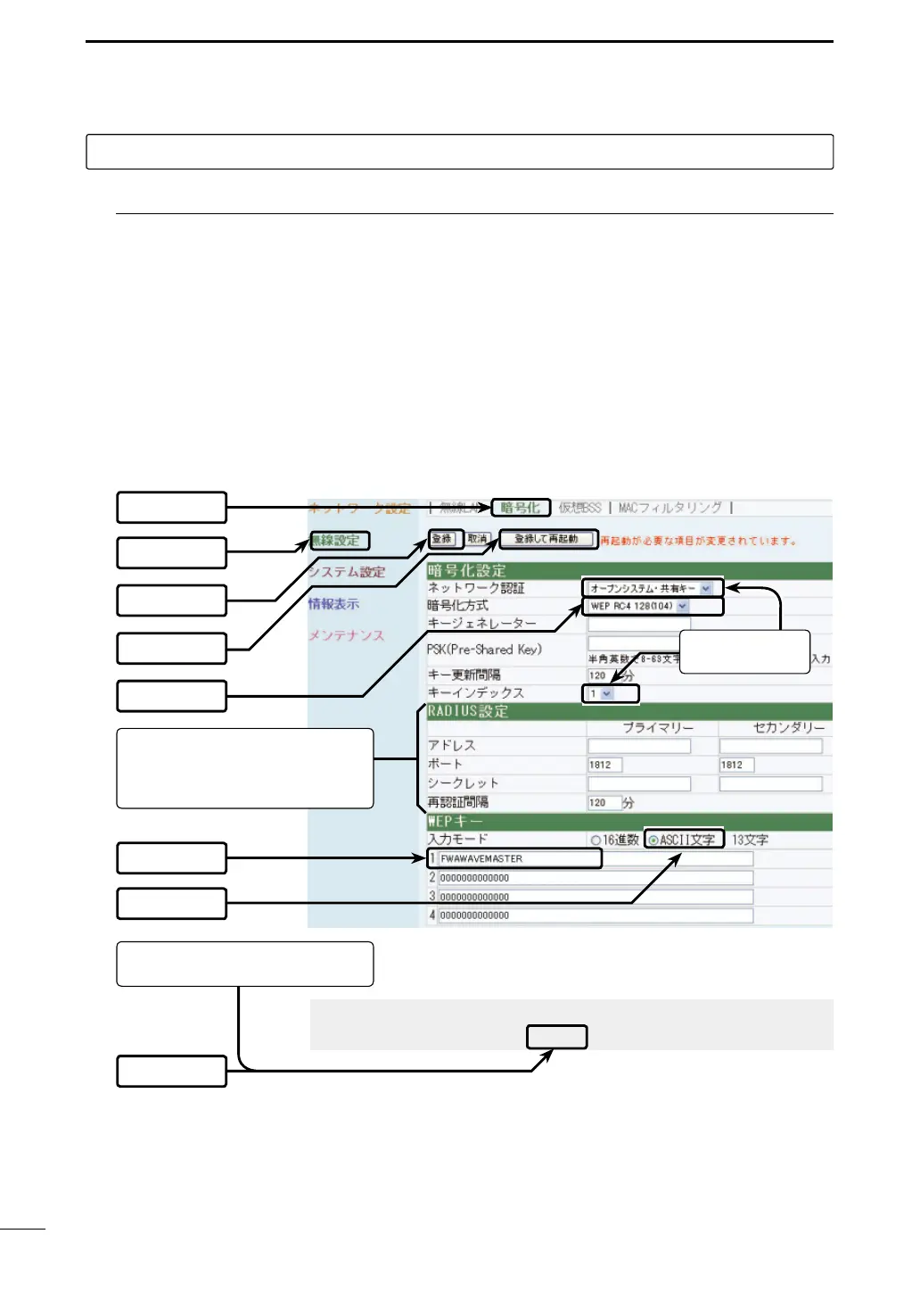 ■ ASCII文字で暗号鍵(キー)を入力するには