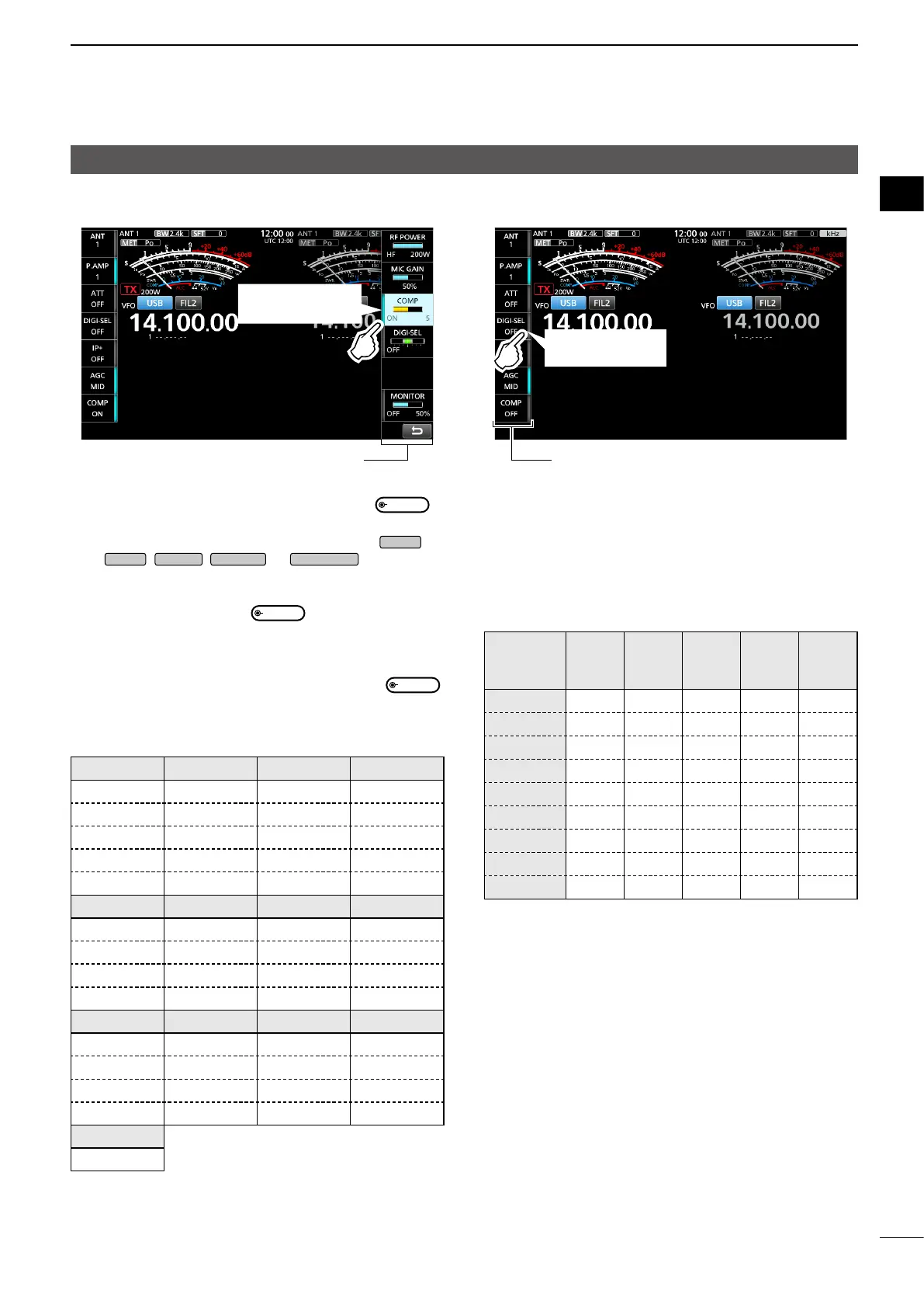 z Touching “AGC” or “TONE” for 1 second opens the