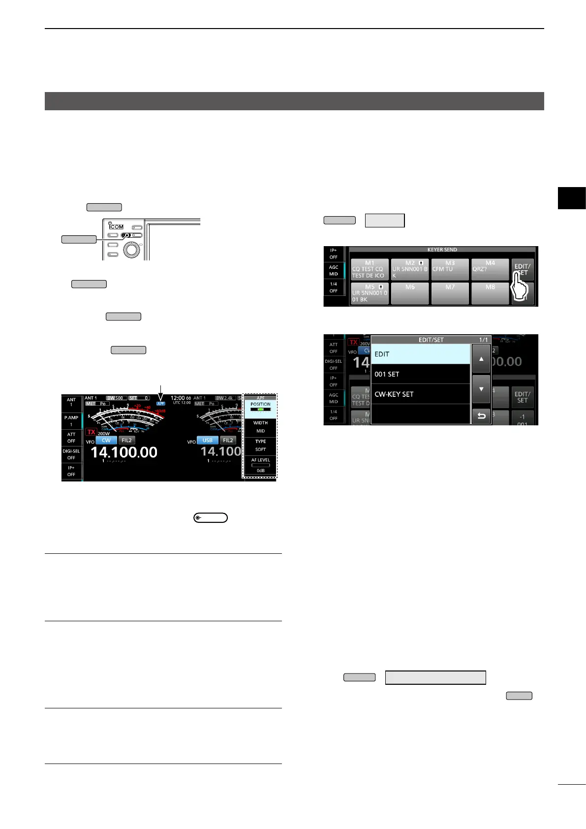 Opens the CW-KEY SET menu, and you can set the