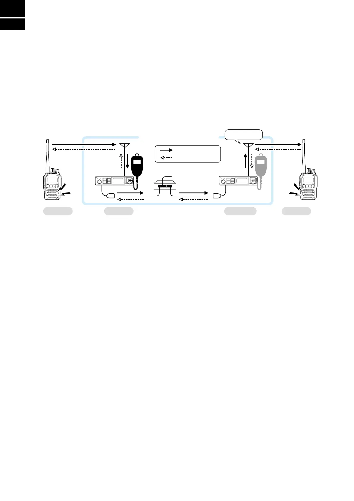 操作機の[PTT]を押すと、中継が中断され、移動機の呼び出しに応答することもできます。