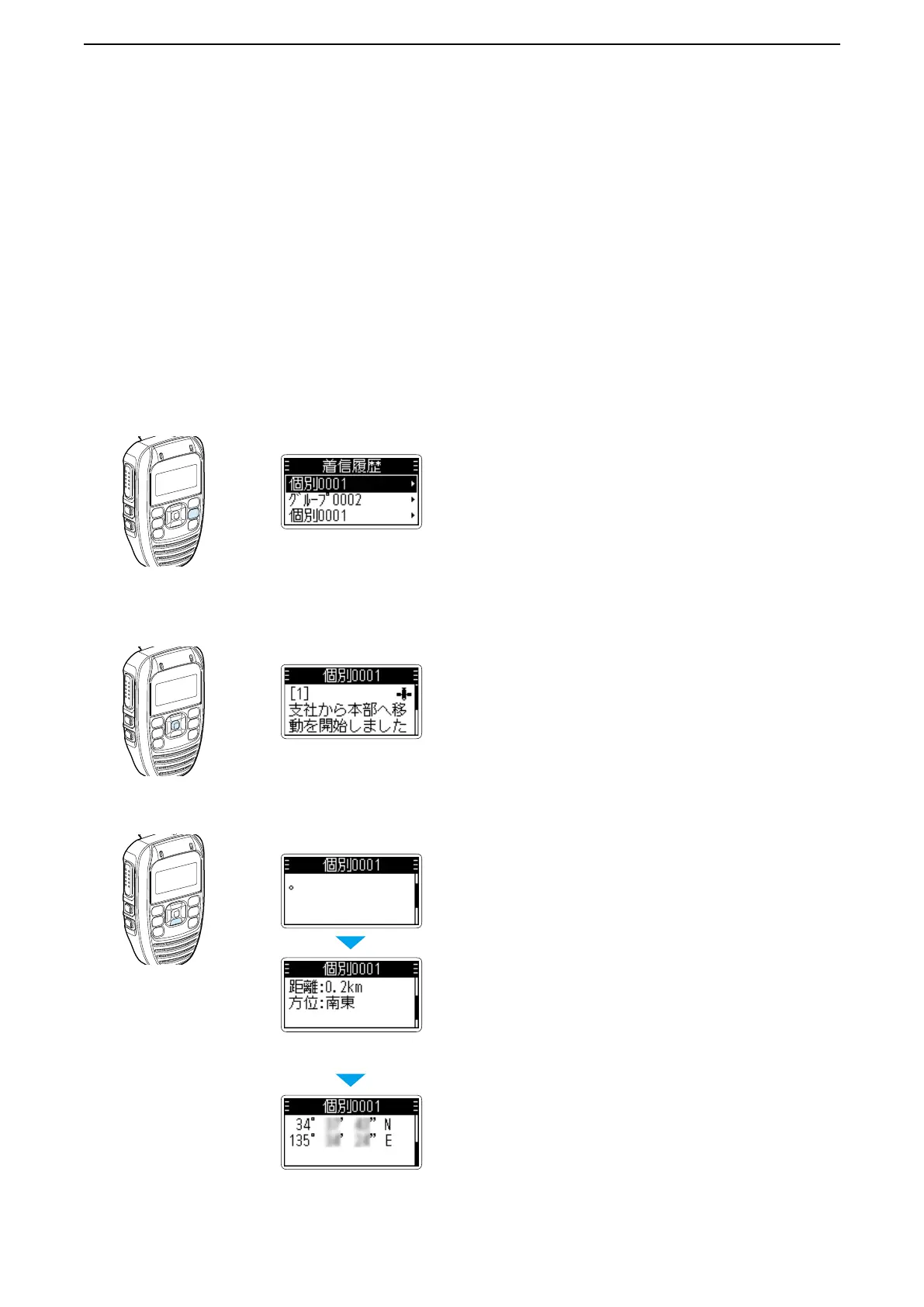 ら受信相手の位置情報や距離と方位を確認できます。
