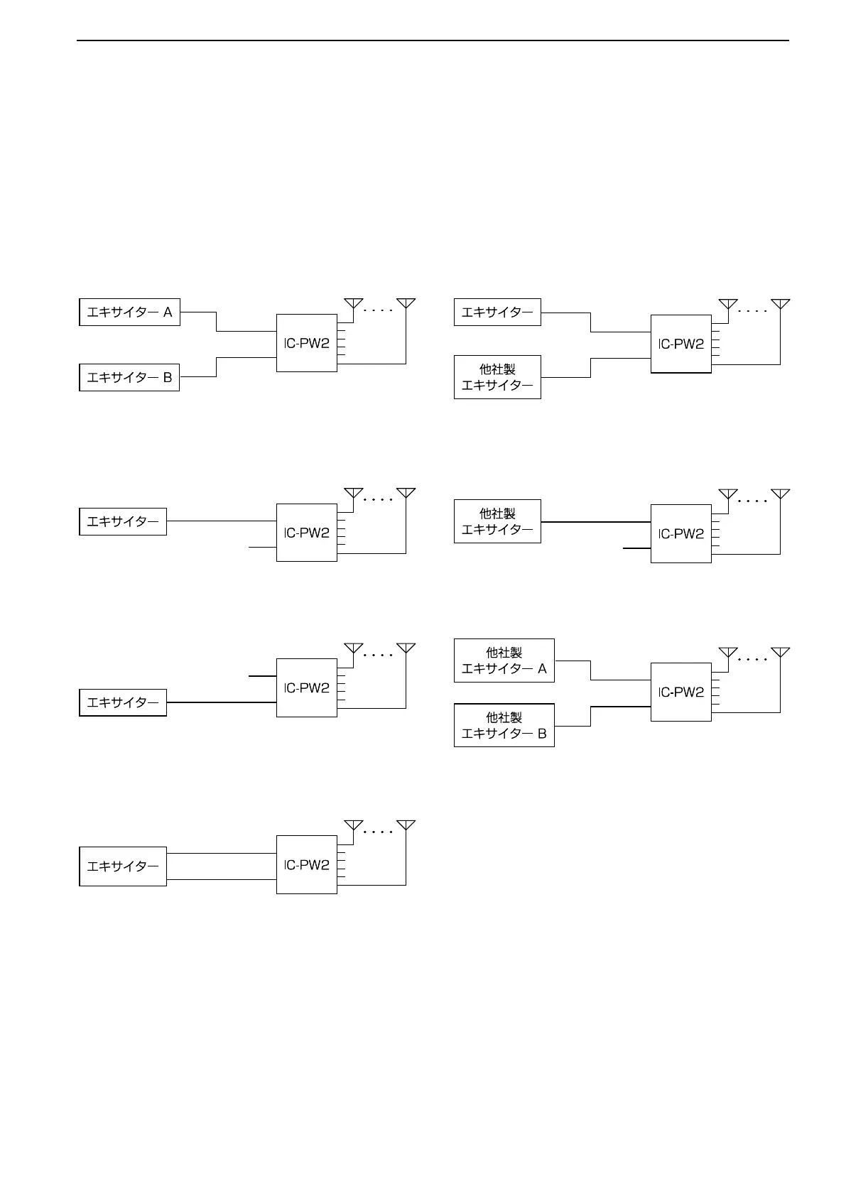 接続には、エキサイターの仕様や運用スタイルによって、以下のようなパターンがあります。