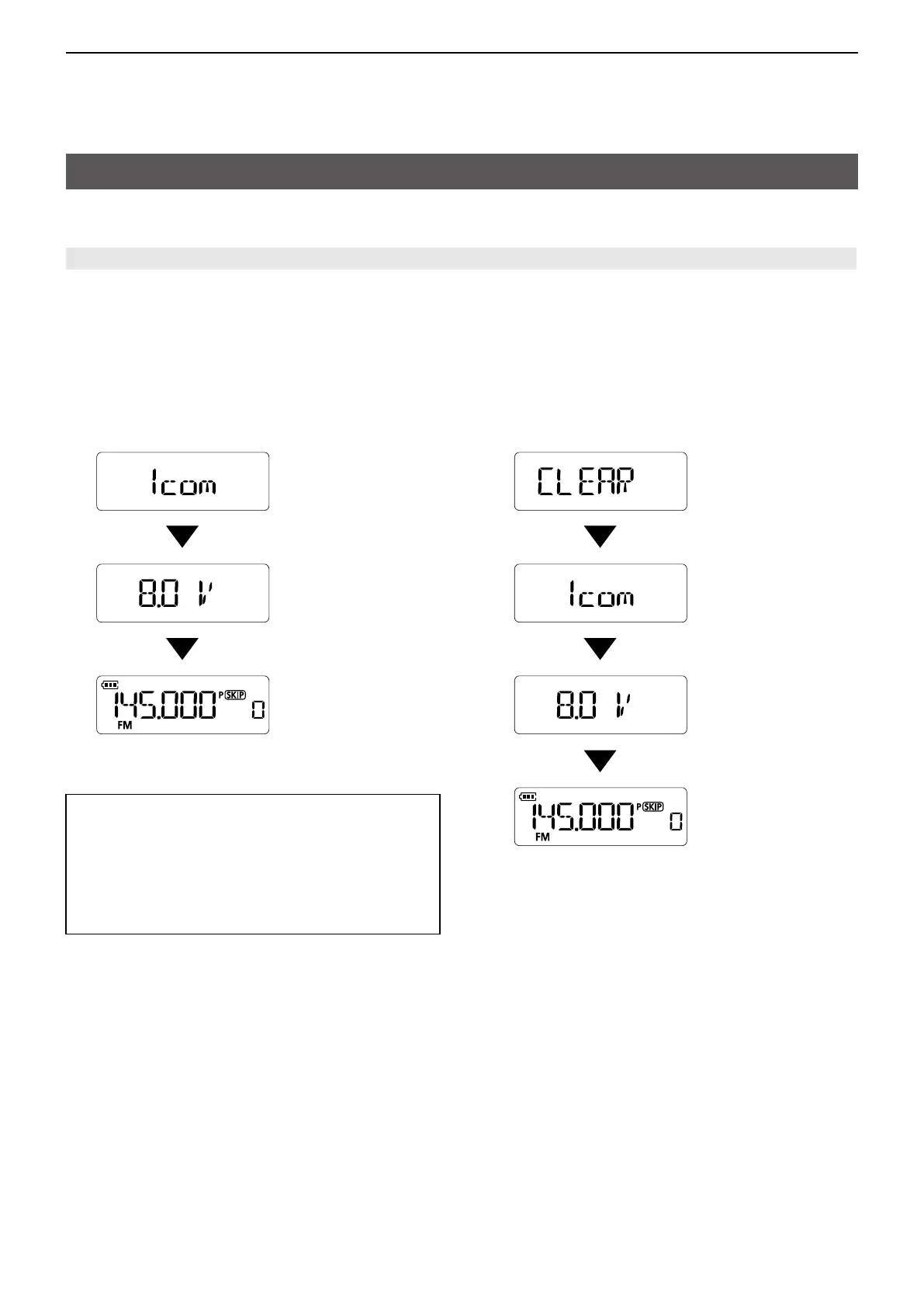 • “CLEAR,” “Icom,” and the voltage are displayed, and