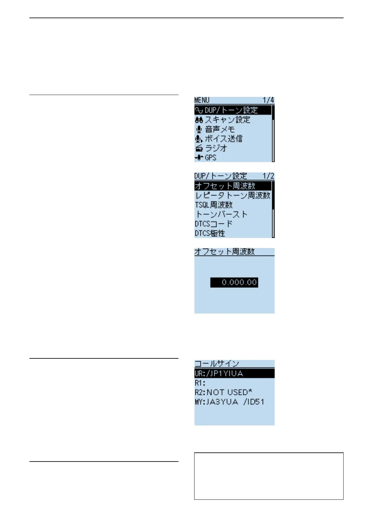 3.[MENU]を押して、コールサイン設定画面を解除しま