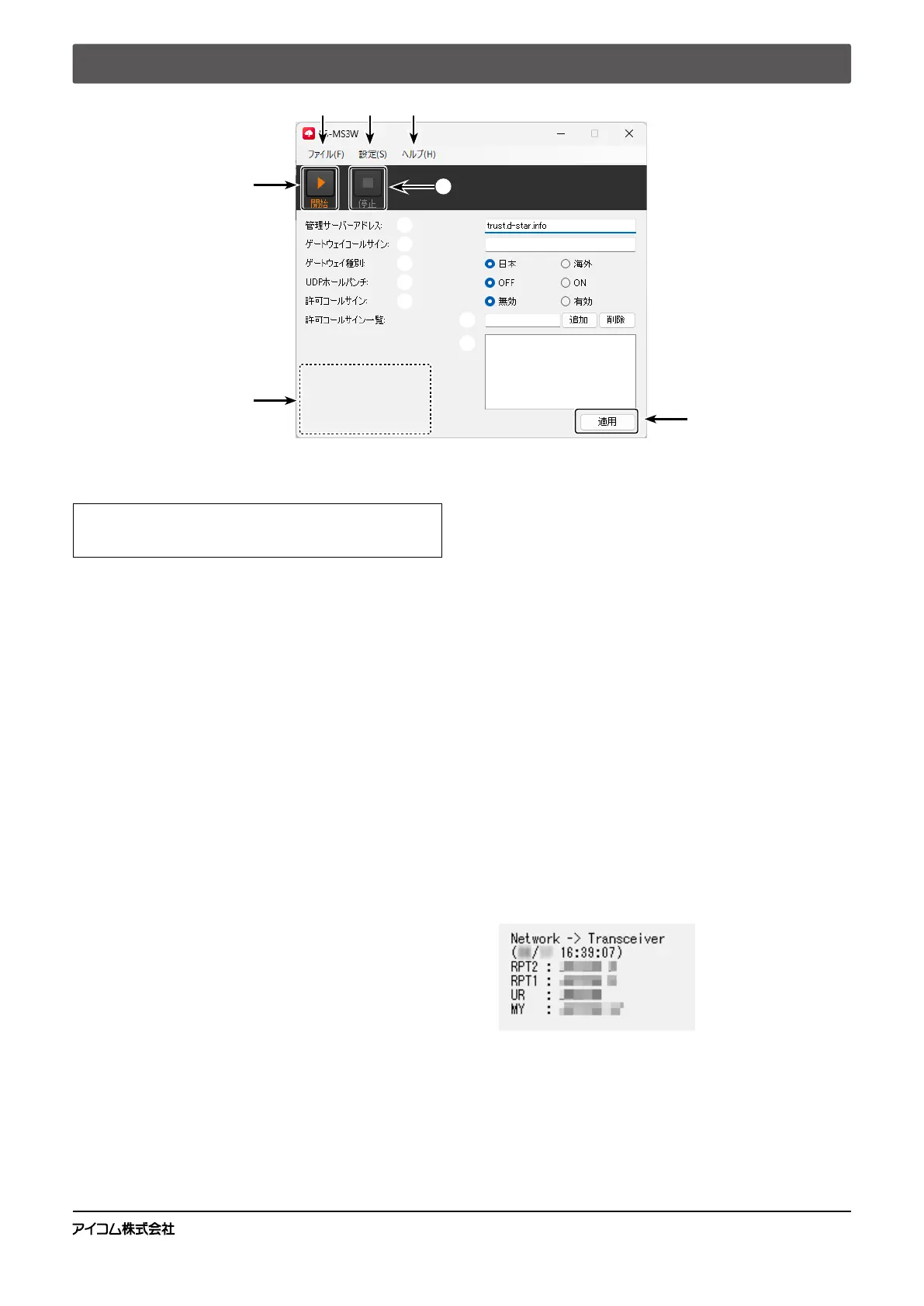 ン情報や、インターネット回線から受信したコールサイン