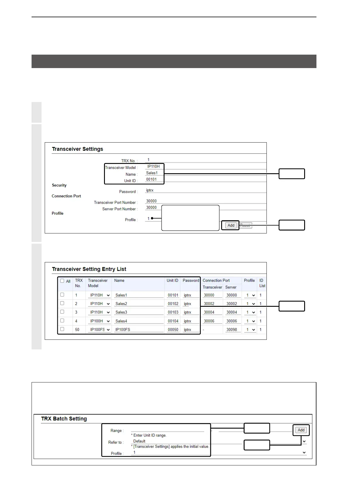 You can register 2 or more transceivers at once in sequential TRX numbering, or copy the settings from an