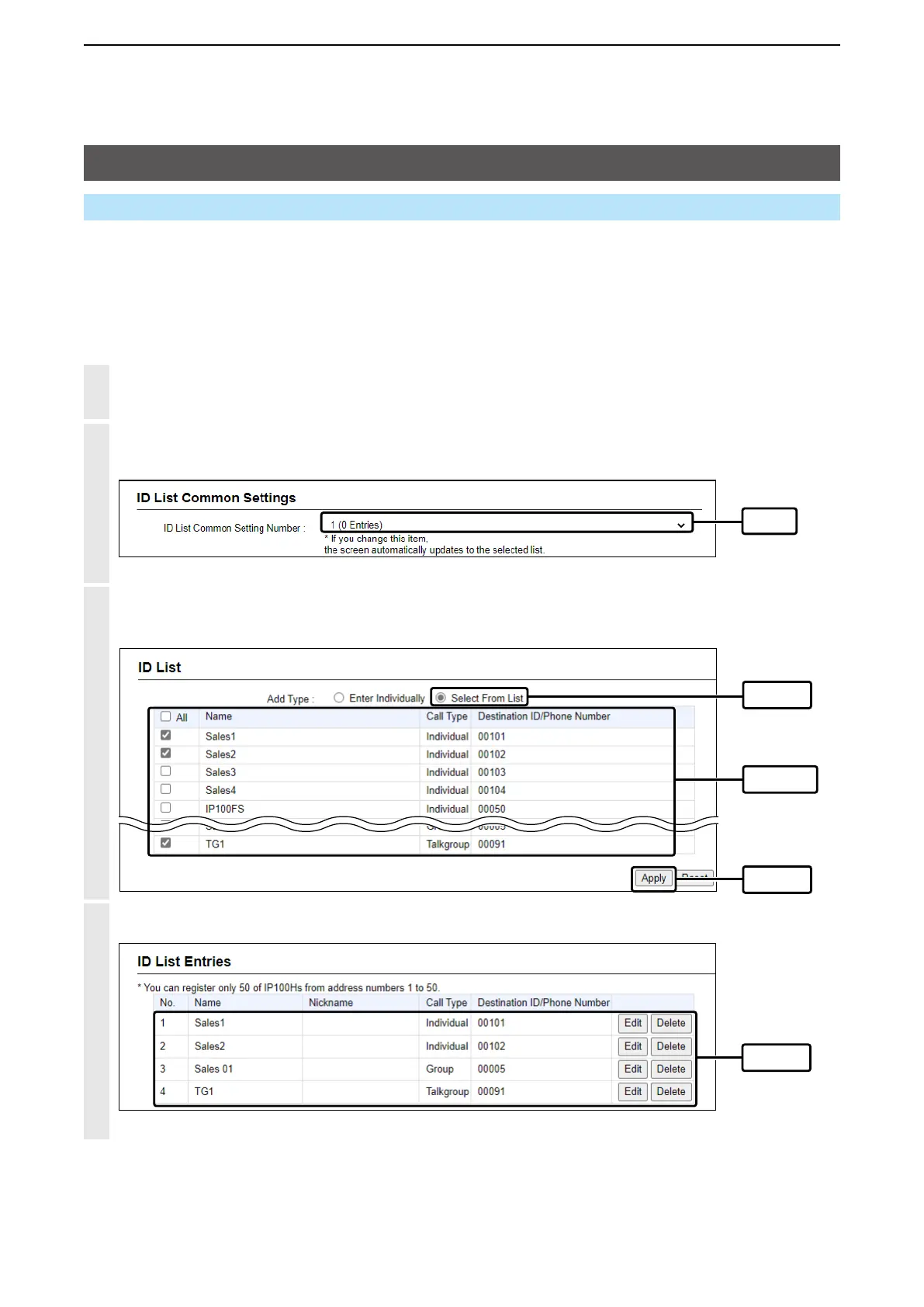 2 In [ID List Common Settings], select an ID list common setting number (Example: 1) that you want to
