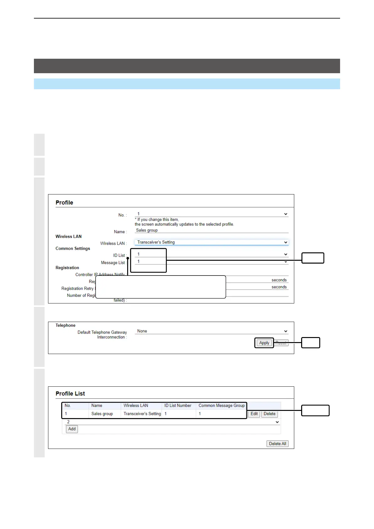 3 Select ID List and Message List numbers that you want to use in the setting group.