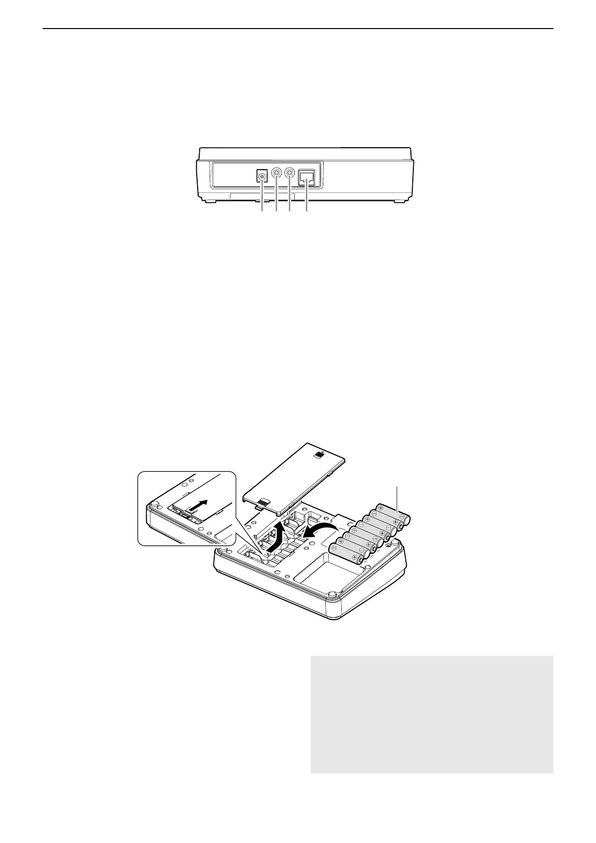 乾電池で運用する場合は、底面のフタを開け、単3形アルカ