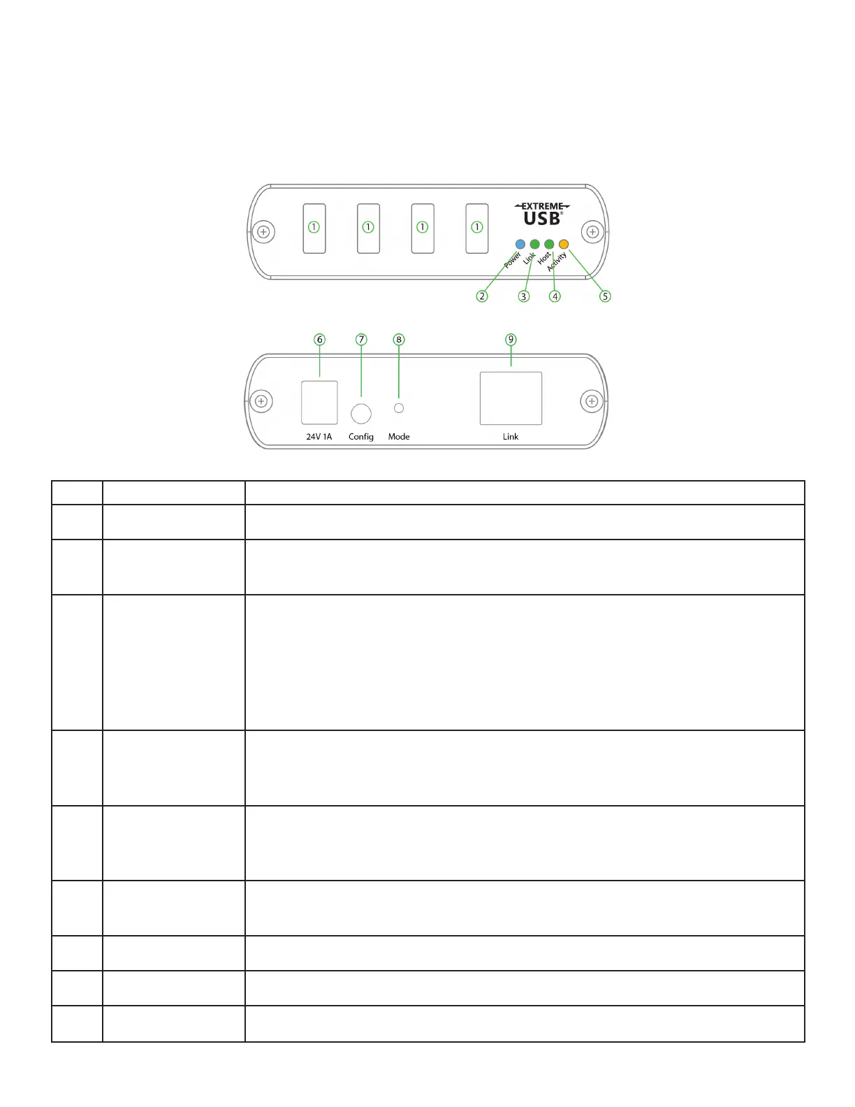 3 Link LED (Green) Indicates a valid ExtremeUSB link is established between the LEX and REX