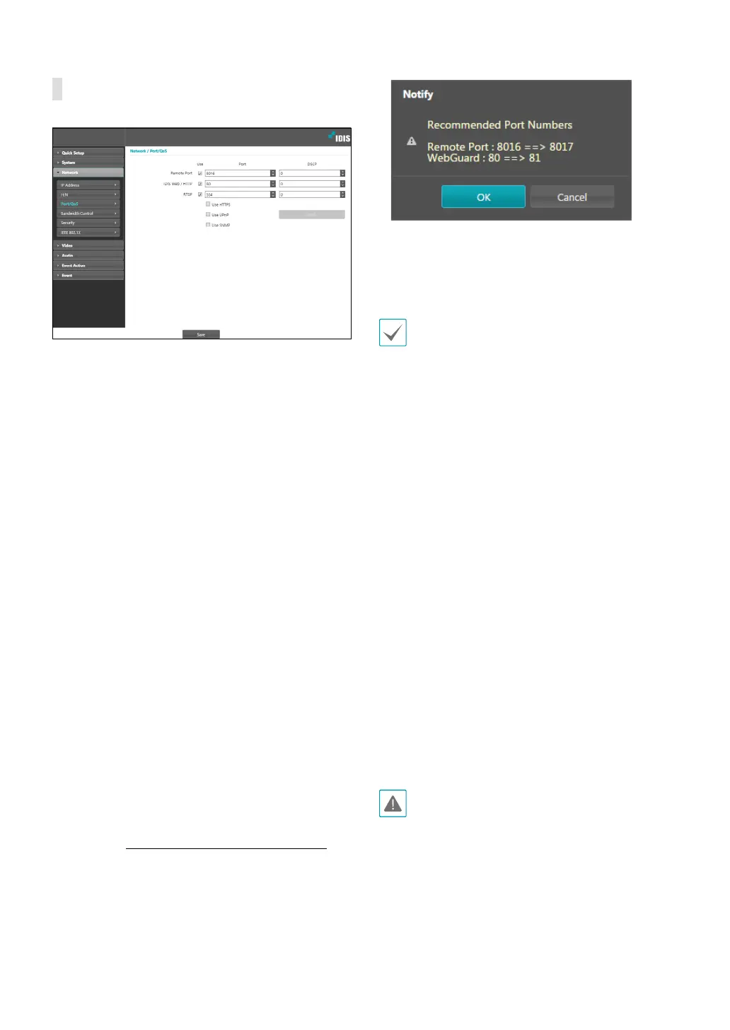 be disabled. By enabling IDIS Web and RTSP ports, you