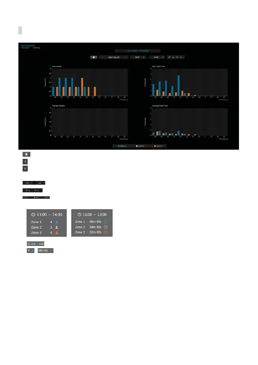 / : Indicates the number of selected people and the dwell time for each zone.