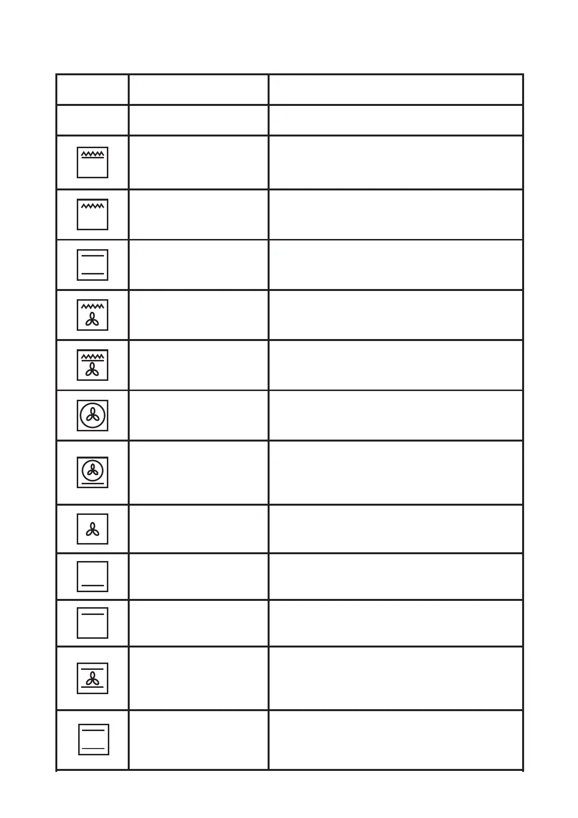 THIS IS GENERAL OVEN FUNCTION TABLE , FUNCTION MAY VARY