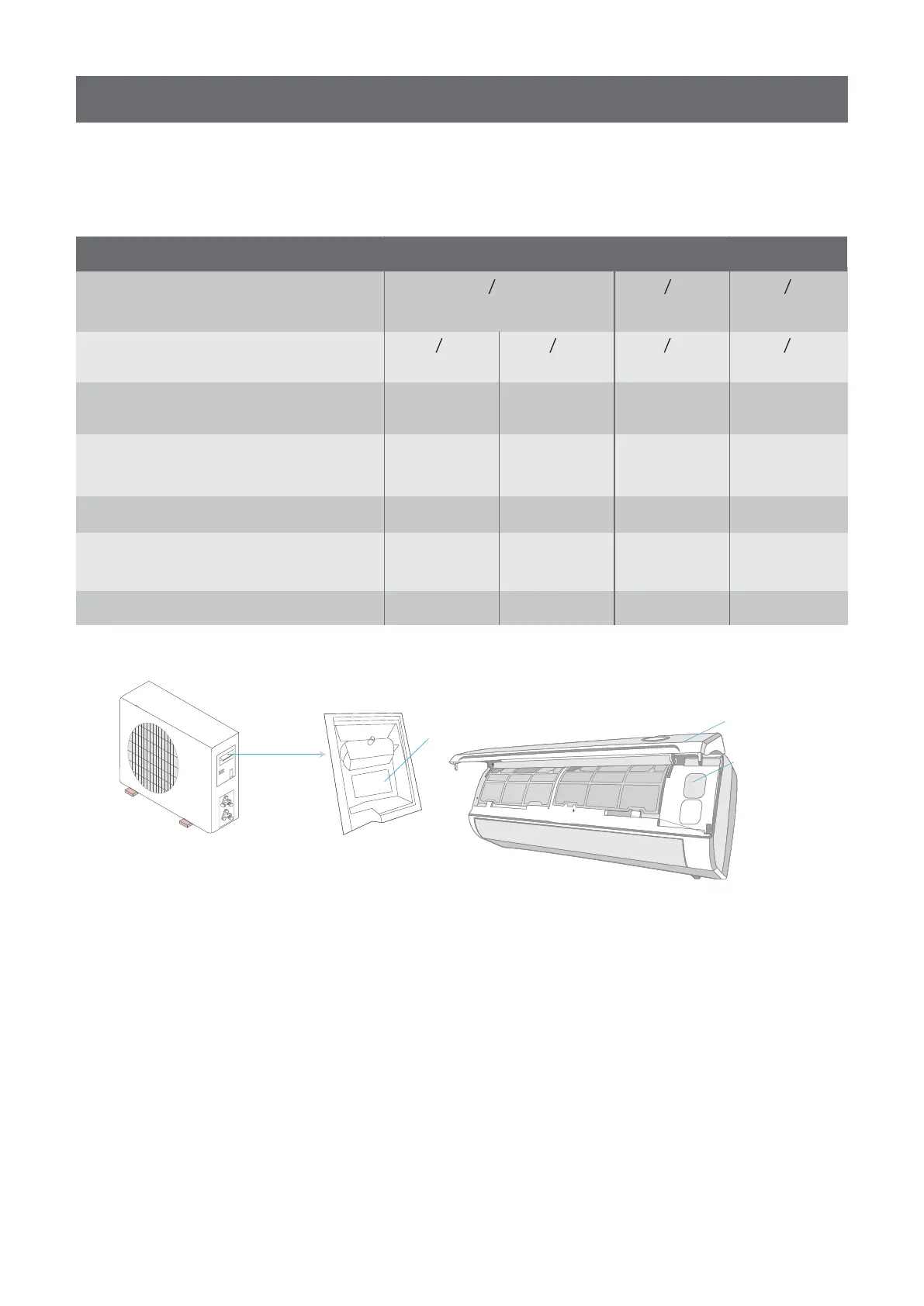 Outdoor Unit : Under the top panel & over the control box cover OR at the back side of the