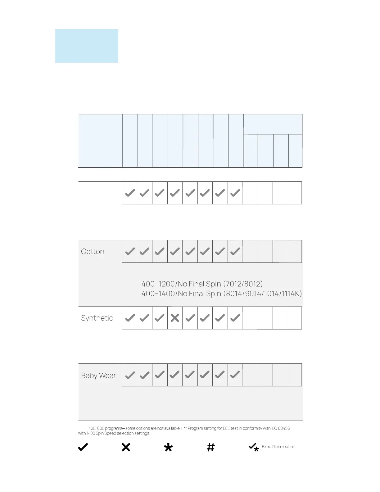 Temperature °C Cold, 30, 40, 60, 95, 40 E, 60E**