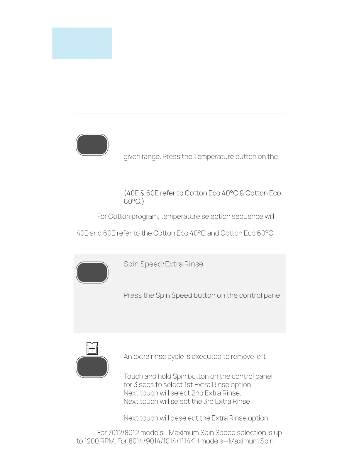 programs. P 0°C to P 95°C - refers to Prewash Option selection.