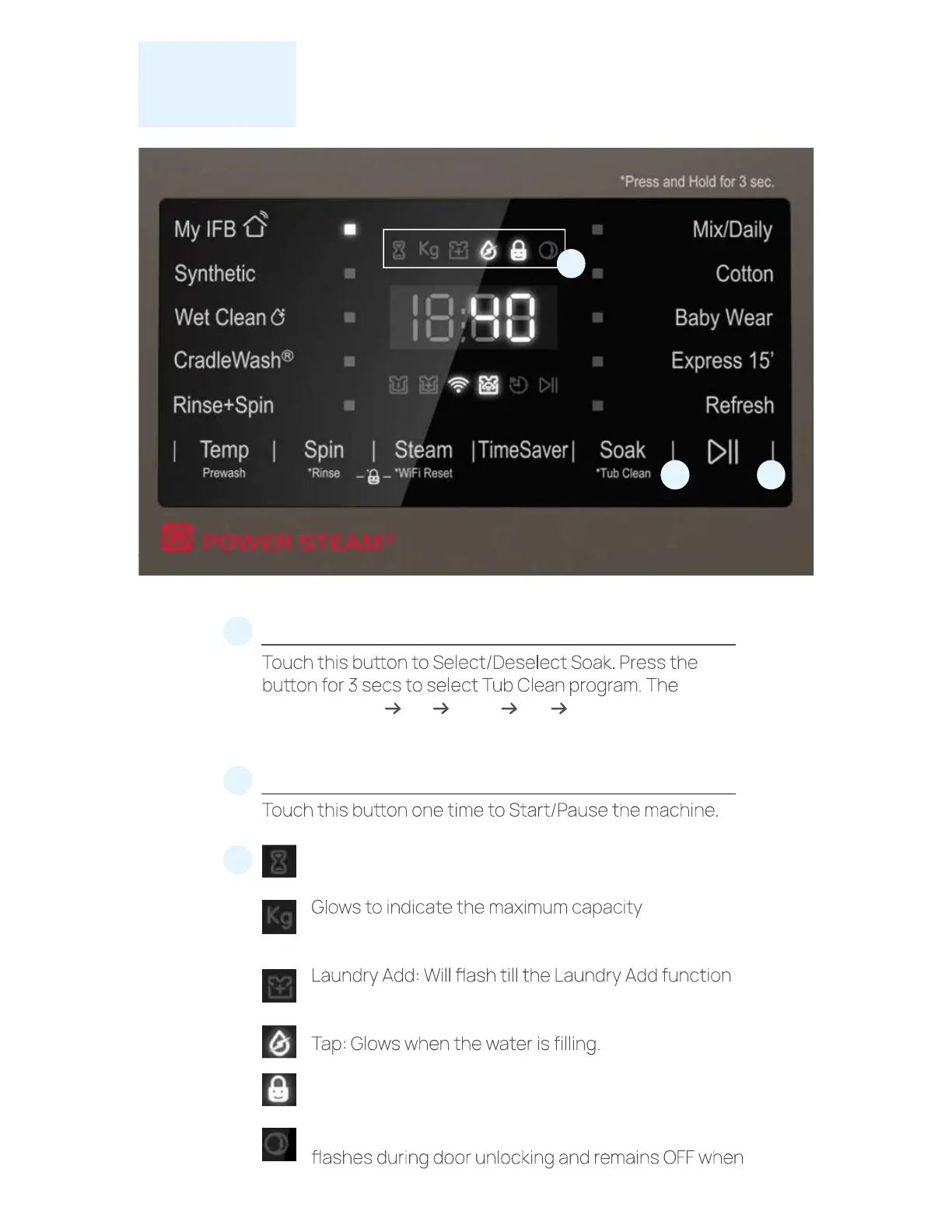 Child Lock: Glows if option is selected.