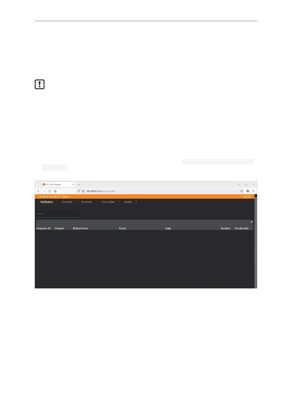 u Go to the following URL: http://<ip-address>/web/subscribe (e.g. http://192.168.82.100/web/