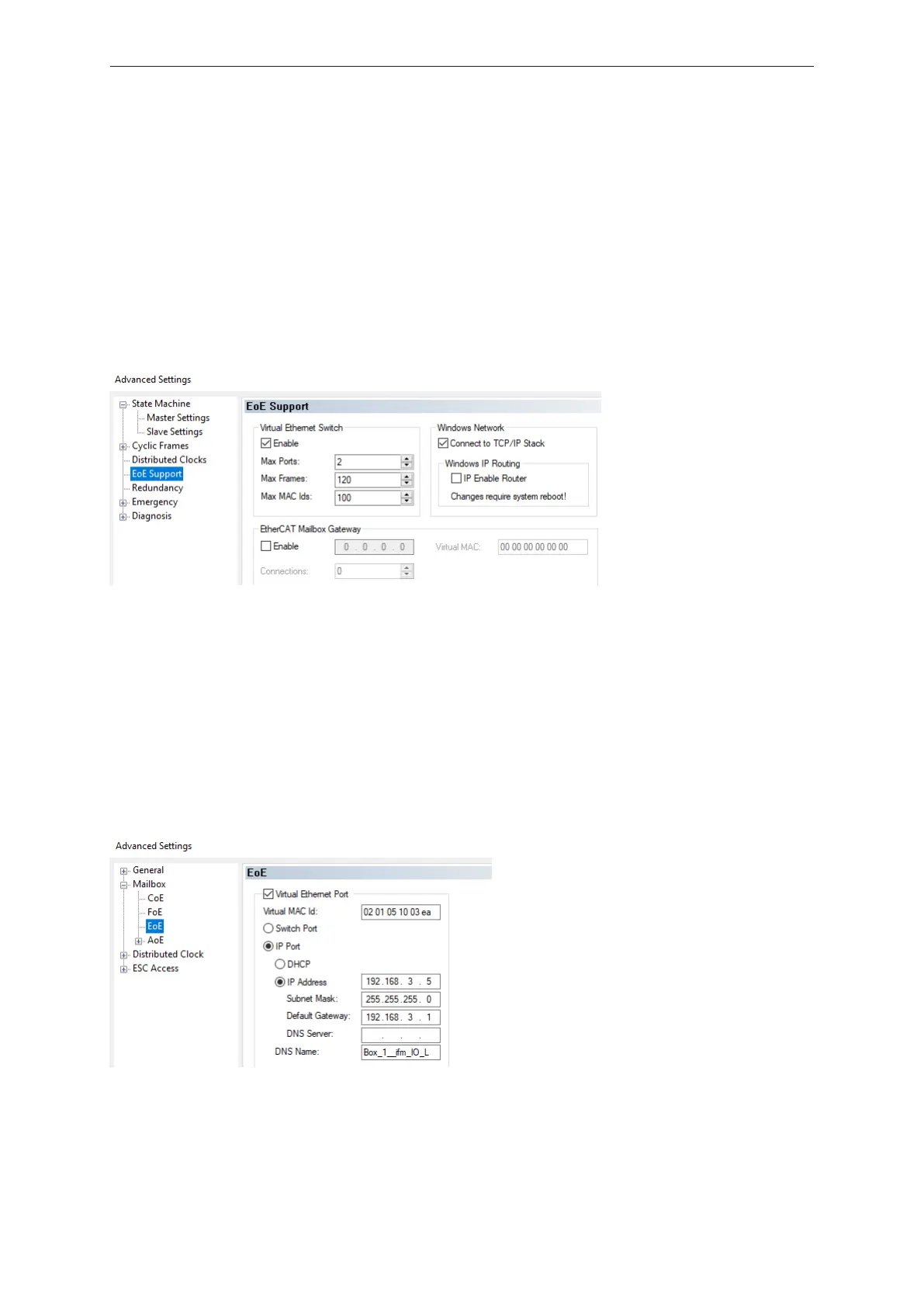 w The EoE protocol is activated and configured on the EtherCAT master.