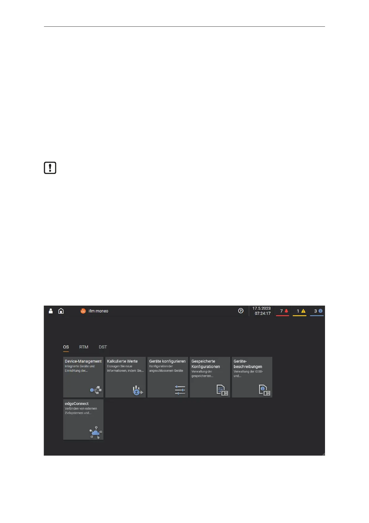 u For a correct installation: observe the installation instruction for ifm moneo.
