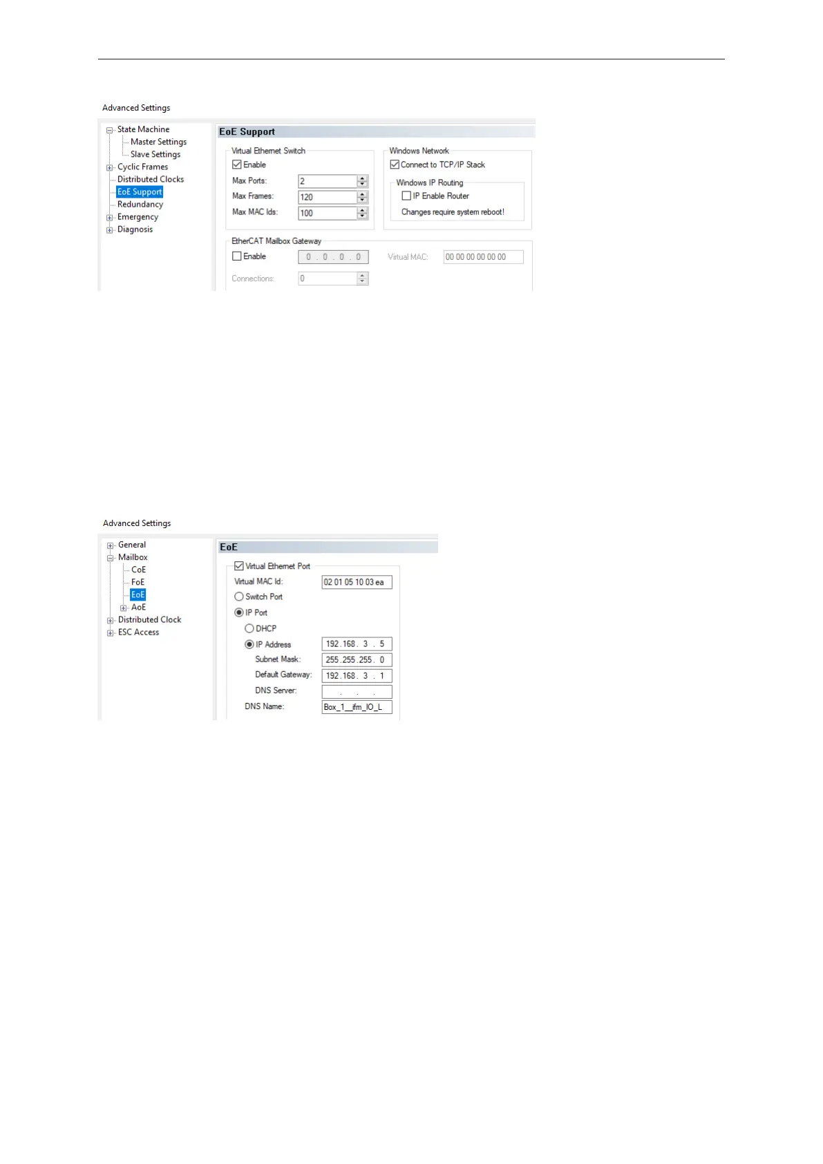 w The EoE protocol is activated and configured on the EtherCAT slave.