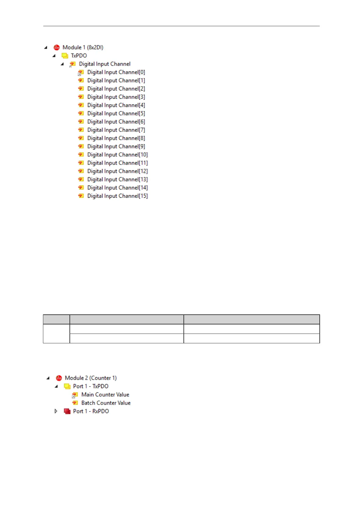 The current counter values are transmitted in the cyclic process data of the Counter 1...Counter 8