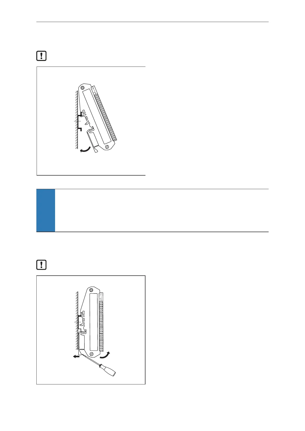 u Mounting on a horizontal DIN rail is