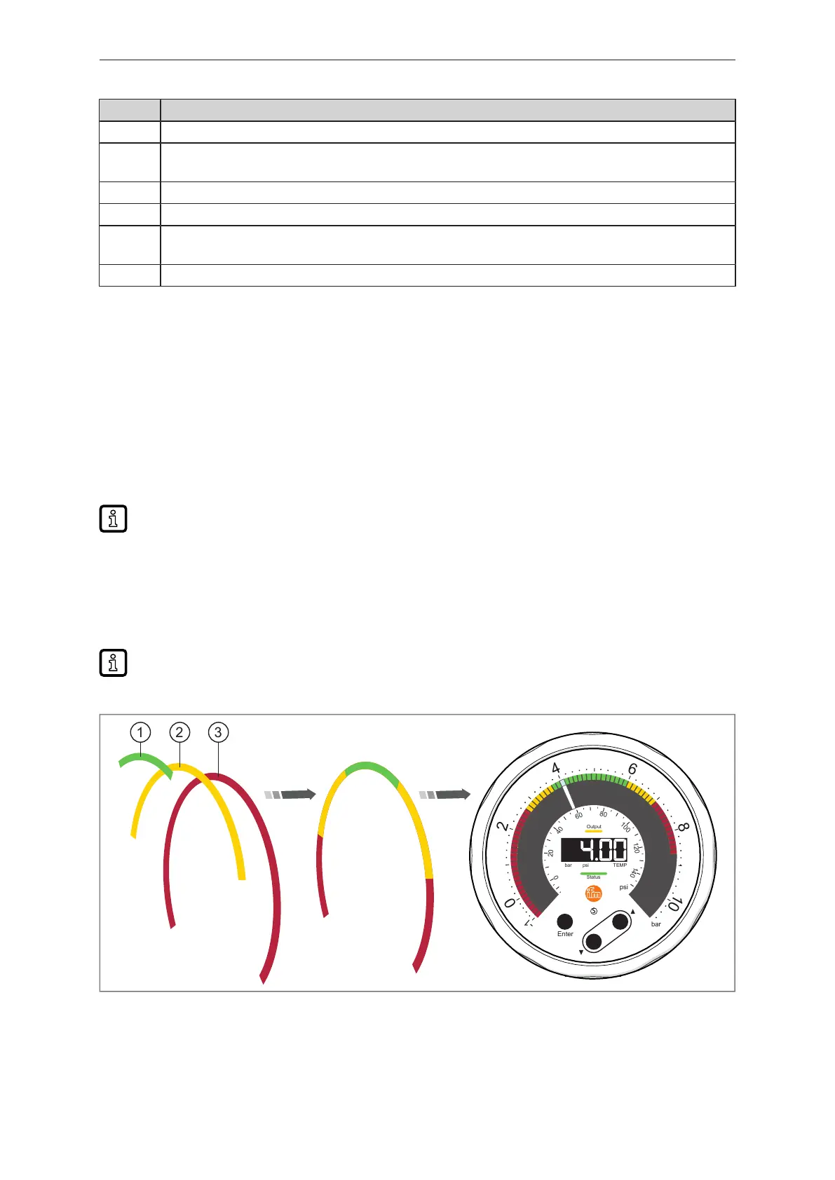• Lag indicator function: The LED segments at the minimum and maximum measured pressure light white.