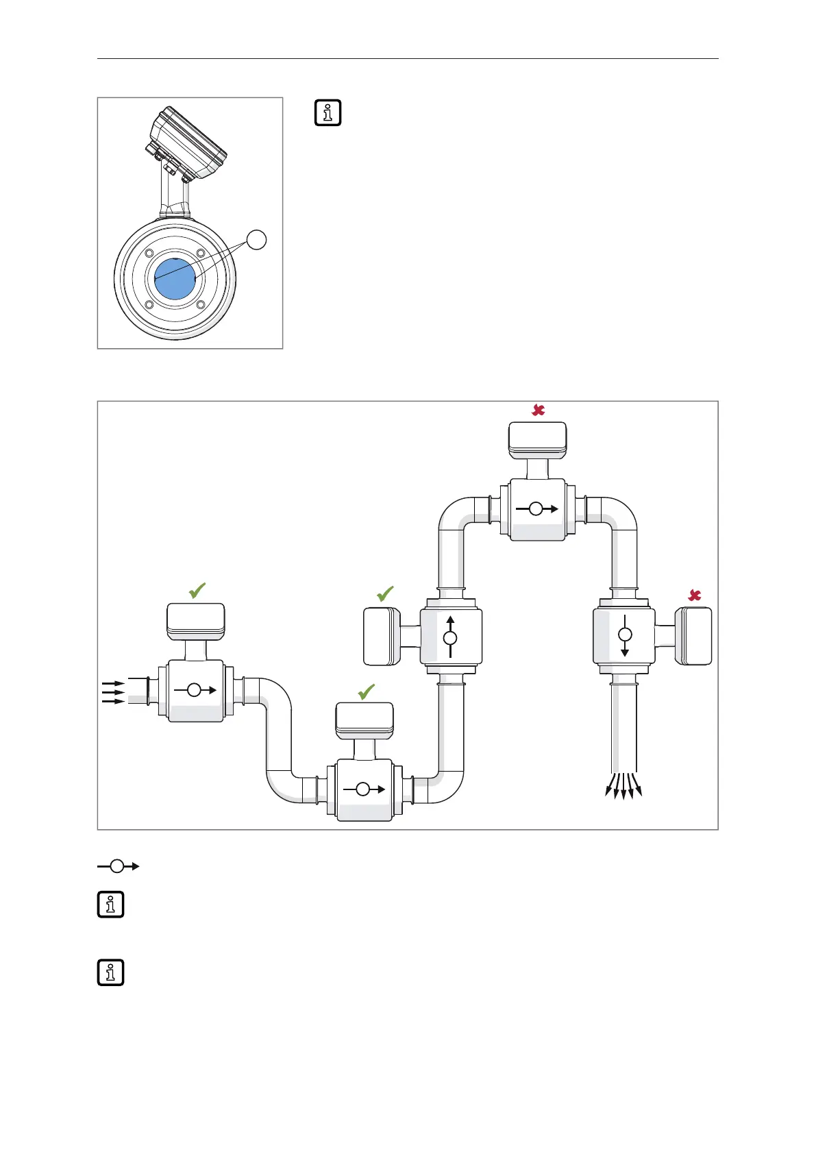 垂直安装时,流量测量电极 (1) 应位于同一平面。任何偏离都