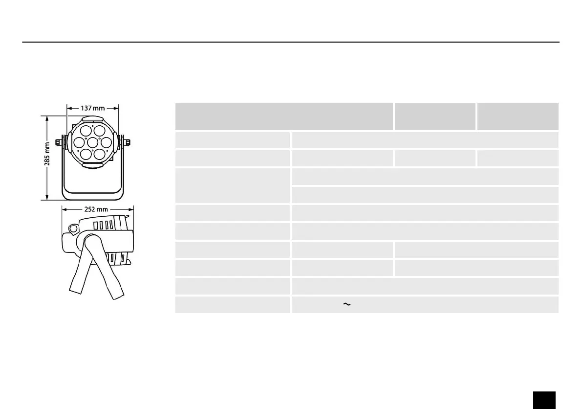 Light source 7 × RGBW 4in1 LED, 10 W