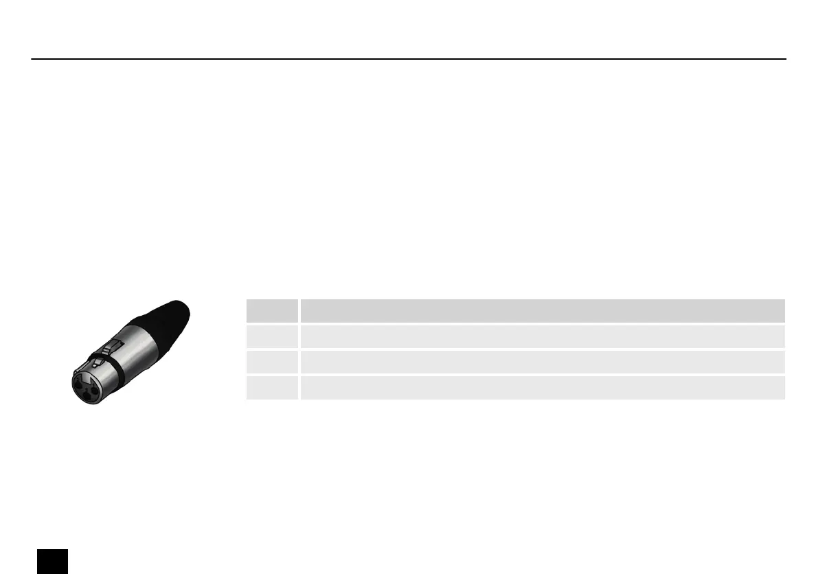 The unit oers a 3-pin XLR socket for DMX output and a 3-pin XLR plug for DMX input. Please