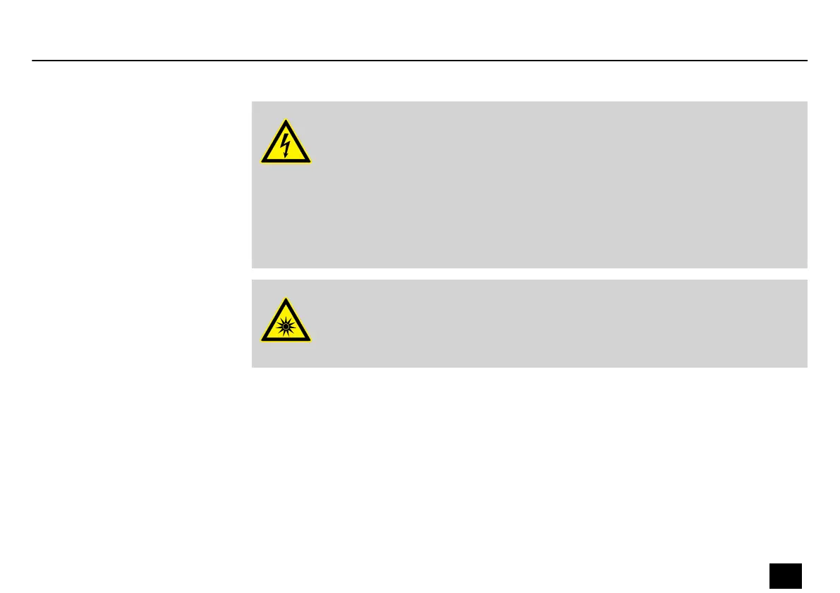 Within the device there are areas where high voltages may be present. Never