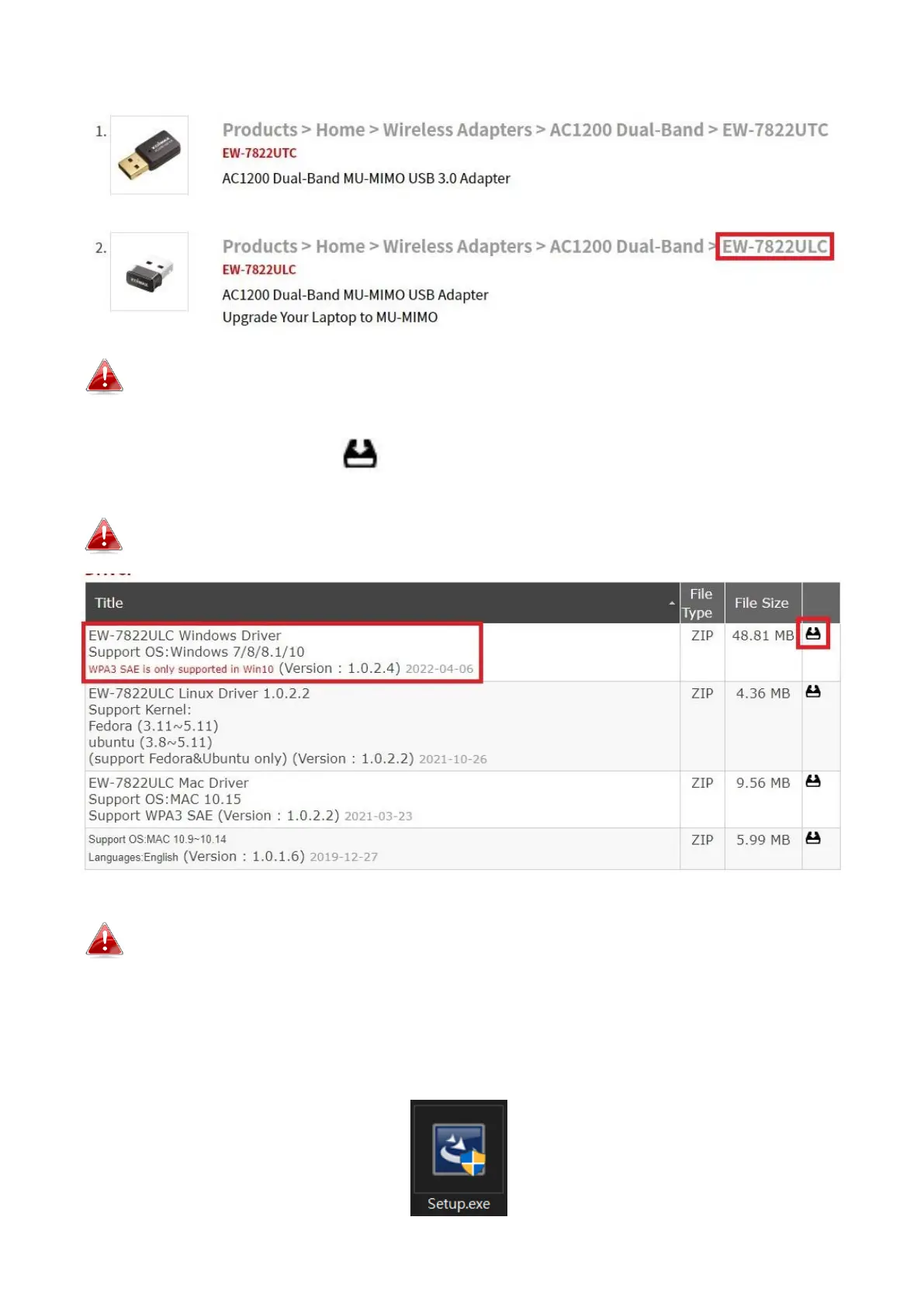 Ensure the model number corresponds with your USB adapter.