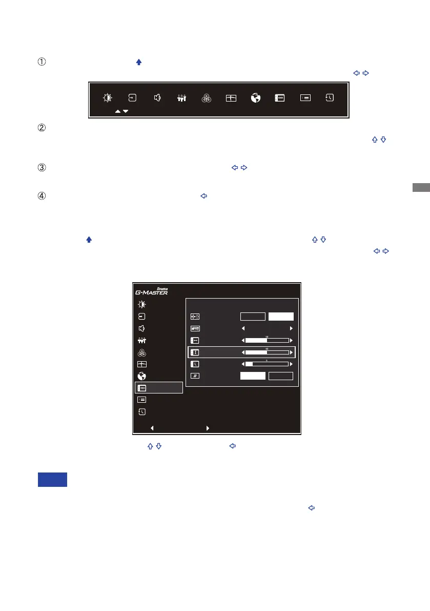 the time set for the "OSD Time" has passed. Also, tilting the Joystick [ ] can be used to return