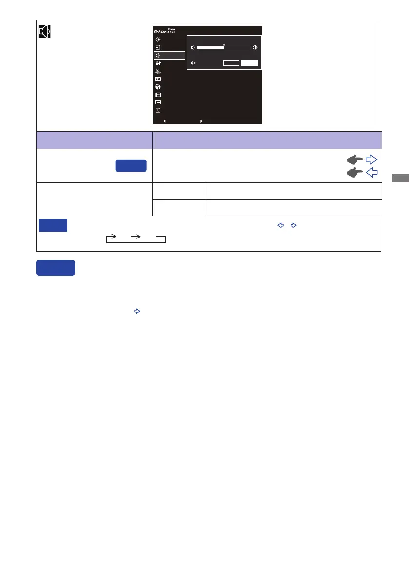 Volume : Tilt the Joystick [ ] with no Menu displayed.